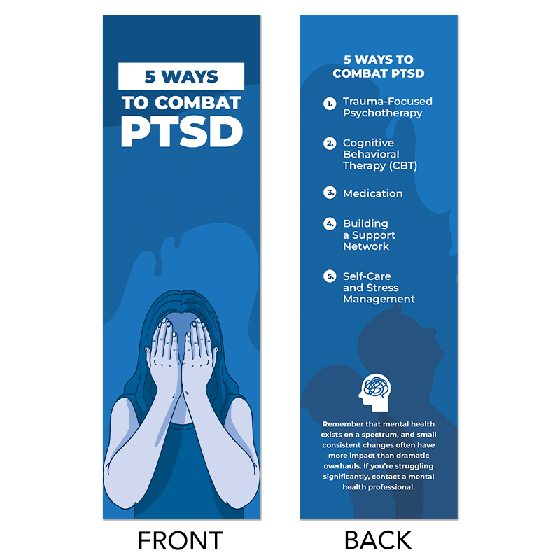 The 5 Ways to Combat PTSD Bookmarks offer simple guidance for individuals working to manage symptoms and strengthen their healing journey. Designed with readability and reassurance in mind, these bookmarks offer practical strategies, providing reminders that support anyone navigating trauma recovery.