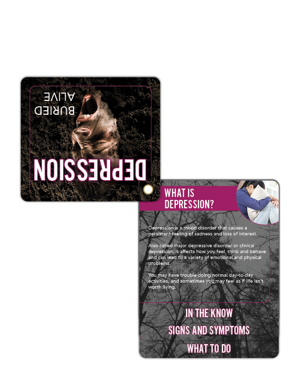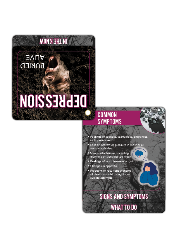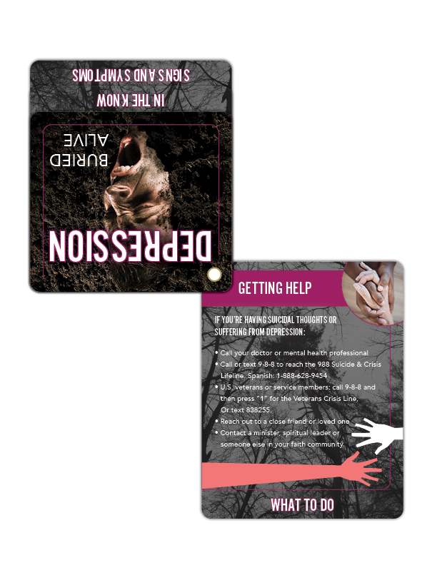 The Depression – Buried Alive Flip Tips use compact, rotating cards to unpack one of today’s most common yet misunderstood mental health struggles. Designed as a portable resource, these depression awareness tips help readers recognize the signs, understand what depression really is, and learn when—and how—to reach out for help.