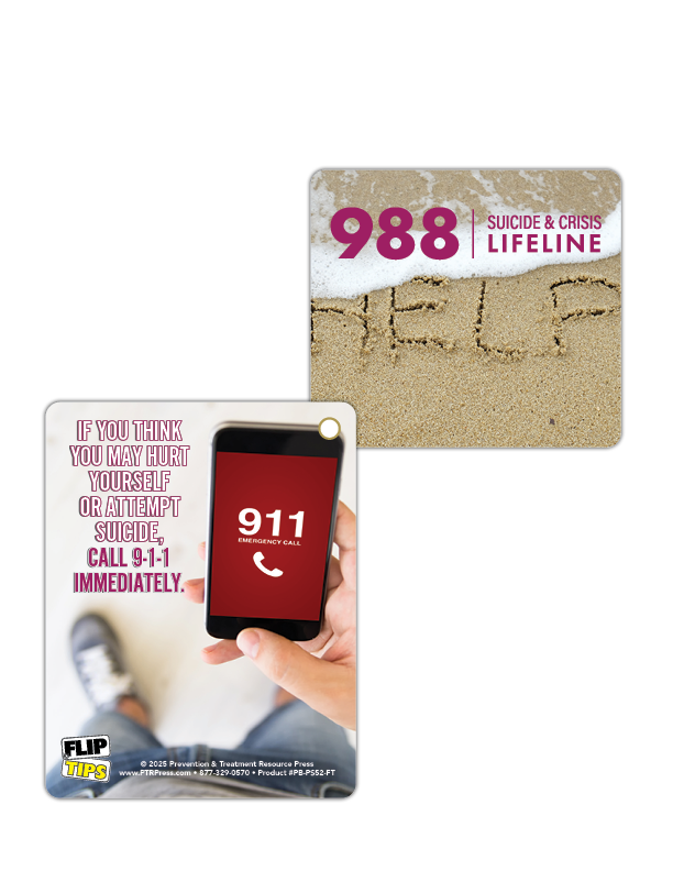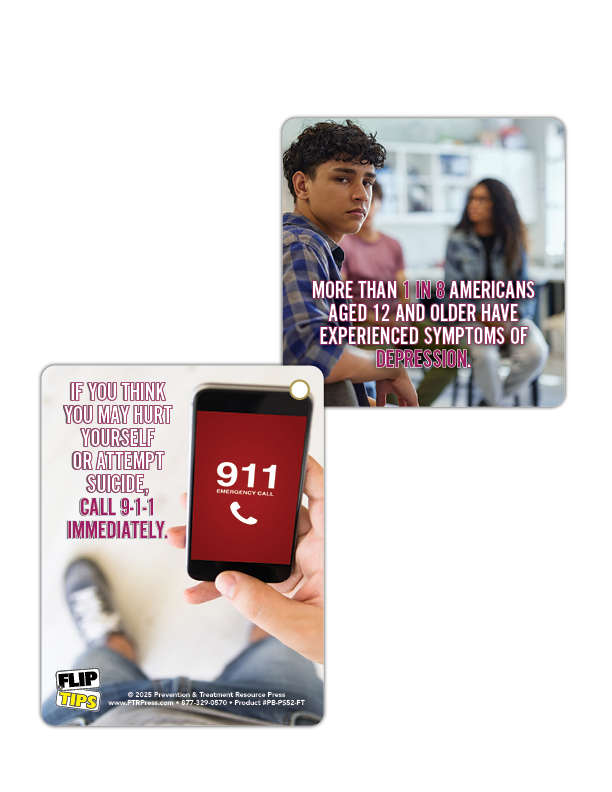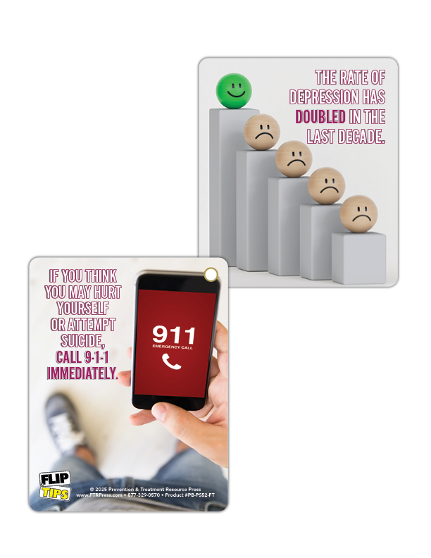 Printed in full color on sturdy stock, these Depression Flip Tips are designed to handle plenty of use without losing their message. Because the road to recovery starts with knowing you’re not alone and knowing what to do next.