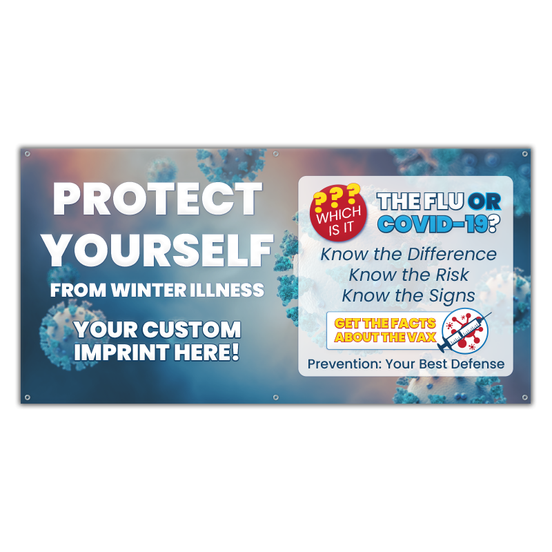 With bold lettering that reads “Protect Yourself from Winter Illness” and side panels that prompt the question, “Which is it—The Flu or COVID?”, this banner encourages passersby to pause, learn, and protect themselves. From recognizing signs and risks to understanding that prevention really is the best defense, it’s an all-in-one health awareness message that works.