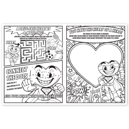 Every hero needs an origin story, and this red ribbon coloring sheet is where it begins. Crayons ready? Cape on? Let’s go. These “Have the Heart of a Hero – Don’t Do Drugs” Activity Sheets give students four pages of coloring, games, and activities that make saying no to drugs feel like a superpower. Because honestly? It is.
