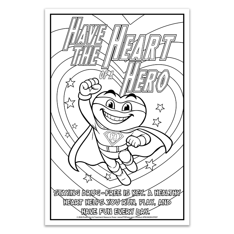 The superhero theme carries through the entire Have the Heart of a Hero line, so pairing this coloring poster with matching drug prevention resources creates a coordinated campaign that builds recognition and reinforces the same drug-free message across every format. When kids see the same characters on the poster, the sticker, and the bookmark, the message stops being something they learned once and becomes something they believe.