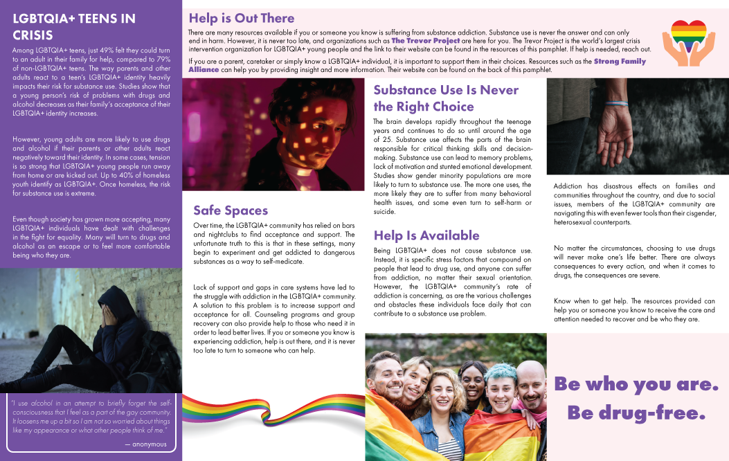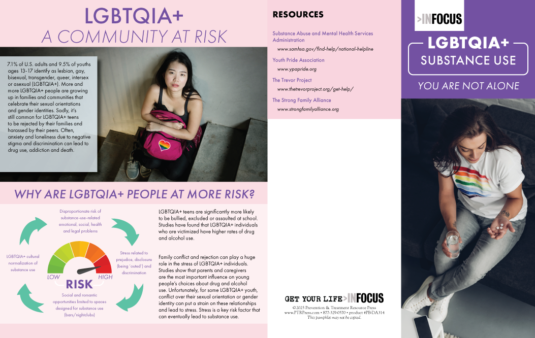 The LGBTQIA Substance Use Pamphlets provide an honest, compassionate look at why LGBTQIA+ individuals—especially teens—often face higher risks when it comes to substance misuse. From social stigma to gaps in support systems, these pamphlets shed light on the unique challenges that can make it harder to find help and easier to slip into unhealthy coping strategies.