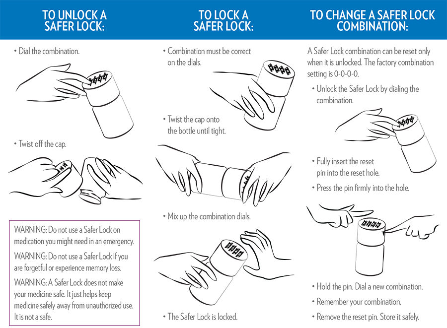 The Safer Lock Cap & Bottle is an ideal choice for families, caregivers, healthcare providers, and community prevention programs seeking a reliable way to secure medications and reduce the risk of abuse.