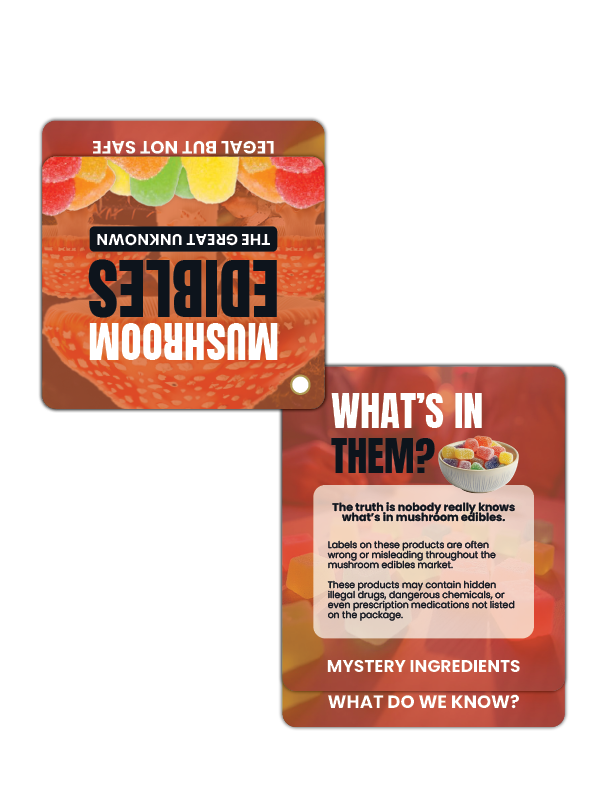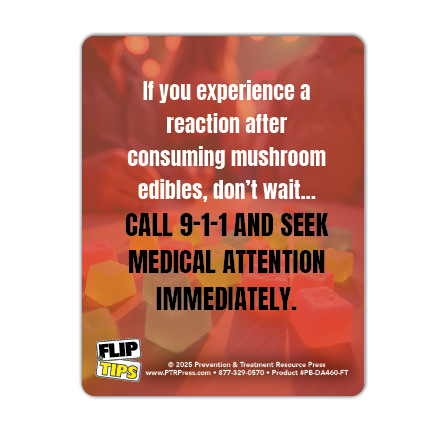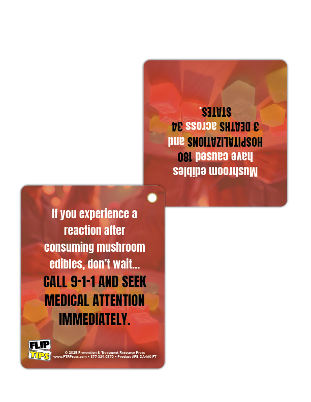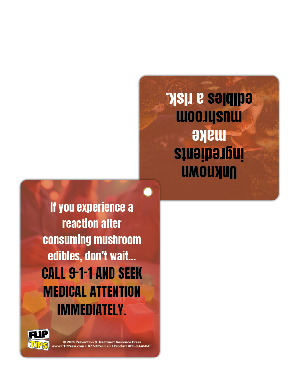Psychedelic gummies aren’t so sweet when you know the risks. These mushroom edible prevention Flip Tips breaks down what people need to know—fast. Compact and full of information that flip open to facts, this pocket-sized tool helps educators, parents, and prevention pros spark smart conversations around the dangers of mushroom edibles.
