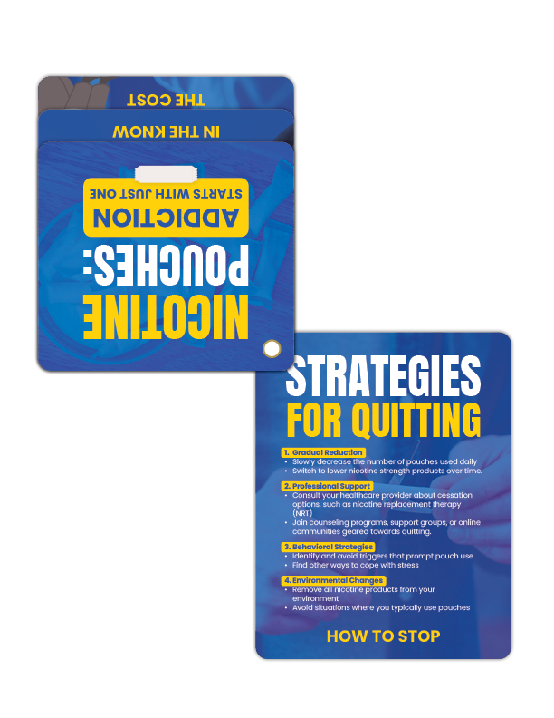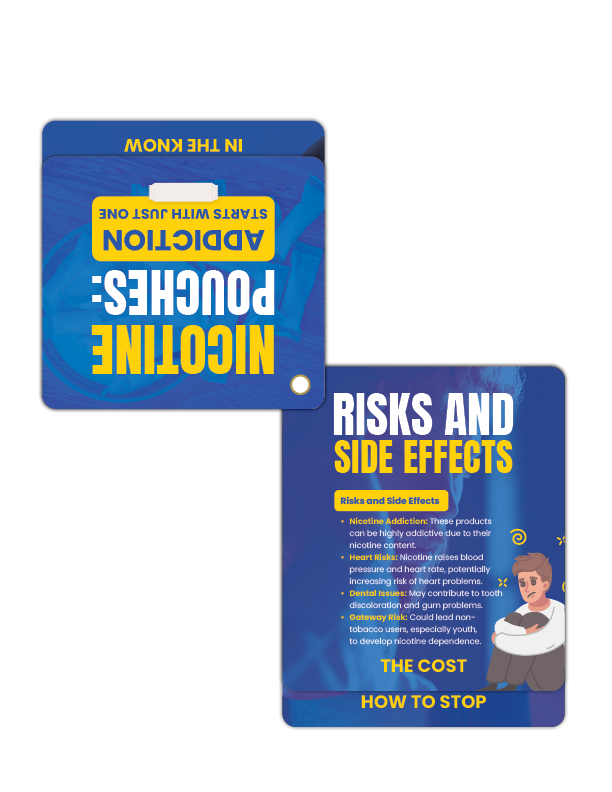 - Quick & Informative – Easy-to-read tips that explain the risks of nicotine pouches in a straightforward, engaging way