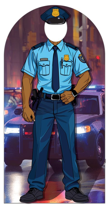 Let kids pose like a pro with our freestanding Police Officer Photo Prop. This child-sized cutout lets kids step into the role of a community protector—uniform, badge, and all—making every photo op a memorable one.