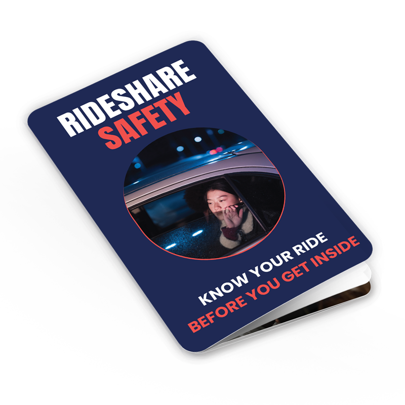 The Rideshare Safety Wallet Guide is a compact, pocket-sized fold-out resource designed to keep essential safety tips at your fingertips. No matter if you’re a teen, college student, or urban explorer, these guides make it easy to remember what to check, what to ask, and how to react when things feel… off. Because let’s face it: while your playlist might be fire, you don’t want your rideshare taking you somewhere unexpected.