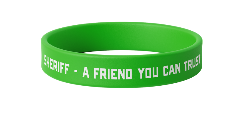 Show support for your local law enforcement with these “Sheriff – A Friend You Can Trust” Silicone Wristbands. Nothing spreads a message as quickly as our awareness wristbands! Worn around the wrist, these attractive rubber bracelets can go many places together with the wearer while also supporting local sheriff departments. A great promotional tool for National Police Week! You can hand them out for a classroom reward during your next public safety presentation or at any event. Each wristband serves as a reminder, a conversation starter and a symbol of community and support, all in one small and discreet package.