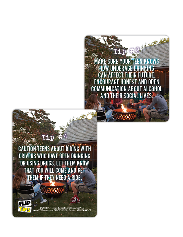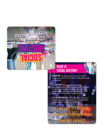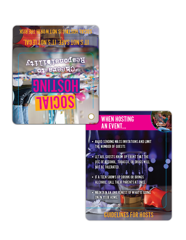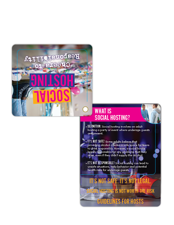 When it comes to underage drinking, the party starts with prevention. These Social Hosting Prevention Flip Tips make it easy to share smart strategies, clear facts, and practical reminders about the risks and consequences of allowing teen drinking at home—even with “good intentions.”
