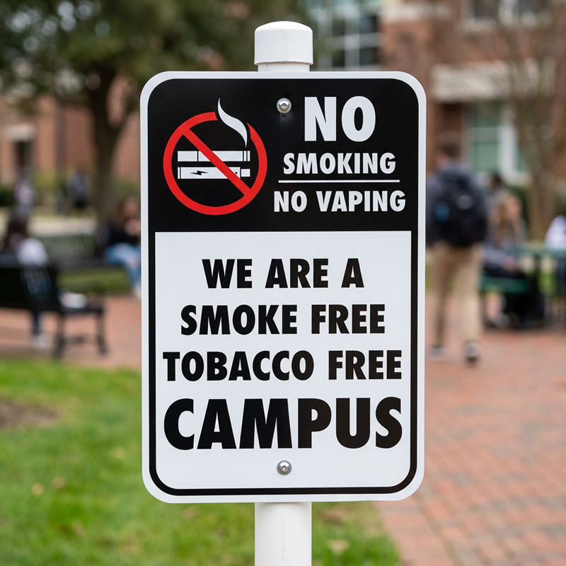 Crafted from high-quality aluminum, these signs are built to withstand the elements—rain or shine, wind or wear—without fading or rusting. With easy-to-read lettering, students, staff, and visitors alike will instantly recognize your commitment to a healthier learning environment.