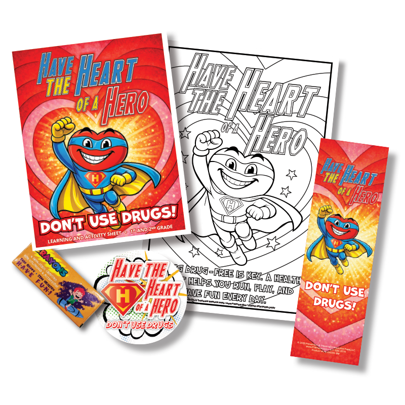 The “Have the Heart of a Hero” KidPak for elementary students arrives pre-packaged, pre-sealed, and loaded with superhero-themed drug prevention goodies designed for first and second graders. Every item inside works together to deliver one consistent message: saying no to drugs is what heroes do. And when a kid believes they’re a hero? Good luck getting them to change their mind.